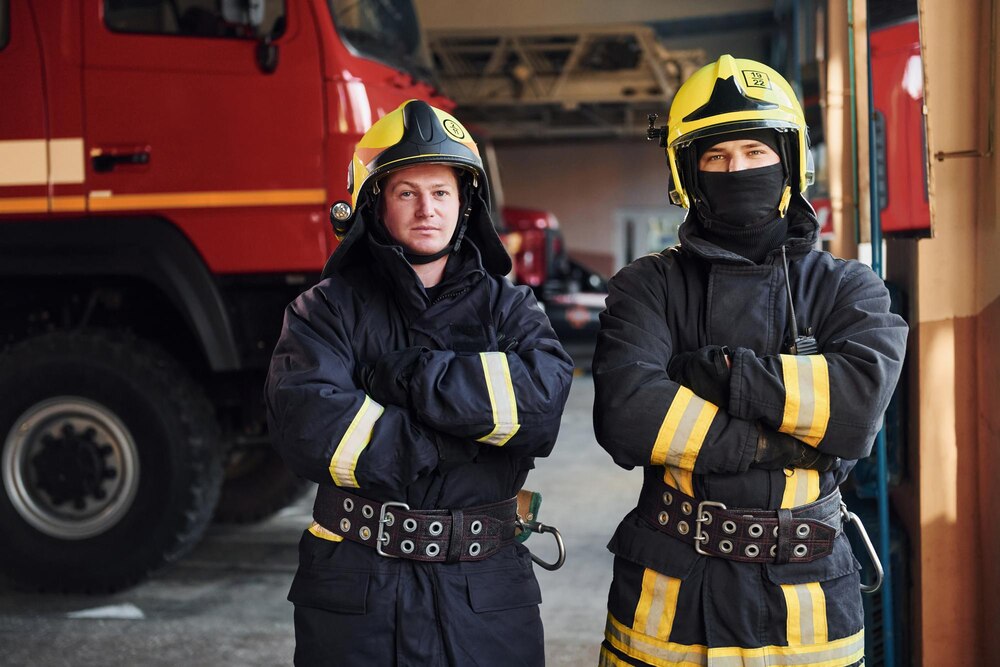 Reprezentanci straży pożarnej na wysokich miejscach